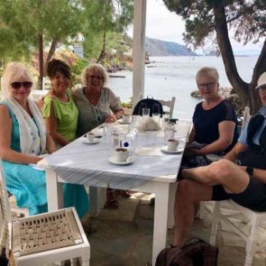 Wir aquarellieren an den schönsten Plätzen der Insel, an Stränden, Felsen, im Hafen, verschwiegenen Treppen mit allen Farben von leuchtenden Blütensträuchern, weißen Häusern, Windmühlen und natürlich am Meer. Zwischendurch ein Cafe Hellenico in einem der zahlreichen Cafés direkt im Hafen oder an den Badebuchten unter Tamarisken und Pinien mit Blick auf das gegenüberliegende Festland des Peleponnes.